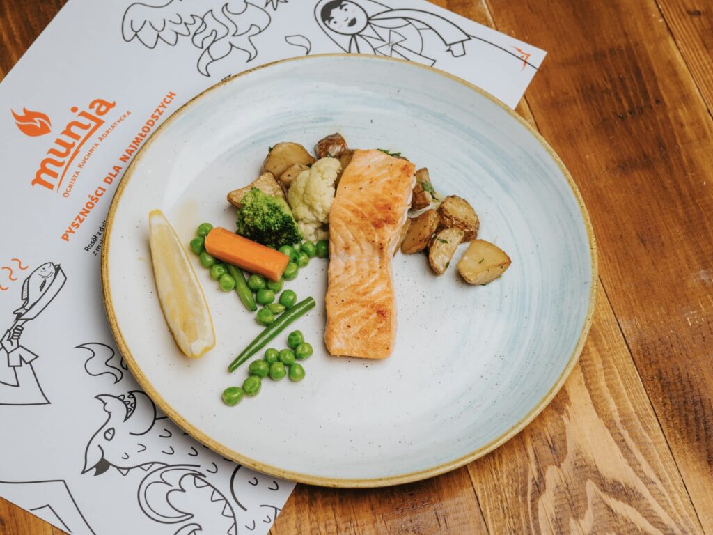 Grillowane nowozelandzkie kotleciki jagnięce marynowane w oliwie z rozmarynem, gratin ziemniaczane z parmezanem i gałką muszkatołową, grillowane sezonowe warzywa